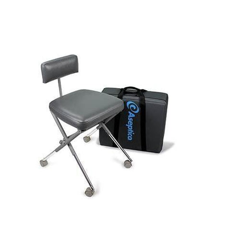Suitable for doctors or assistants, the AseptiStool is necessary to any mobile dental operatory. Its one piece design sets up or stores in seconds, and it swivels on four casters for easy mobility during operations. It is height adjustable, light weight, and folds up for simple storage in the included padded travel case, making portable dentistry simpler.
