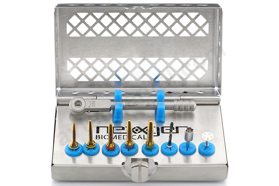 The Easy Bone Expander Kit includes a series of bone expanding screws which are used to expand the alveolar ridge. The bone expander screws have a 4mm square connection, but a square to contra angle adaptor is included for use with any implant handpiece. A pilot drill and saw are also used to aid in the expansion of the ridge. This kit is an all-in-one solution for narrow ridges which makes it an essential part of any implant practice.