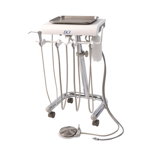 DCIReliance Side Delivery Auto Dental Unit, White Smooth lines for easing cleaning Automatic control for 3 handpieces Includes a stainless-steel tray...