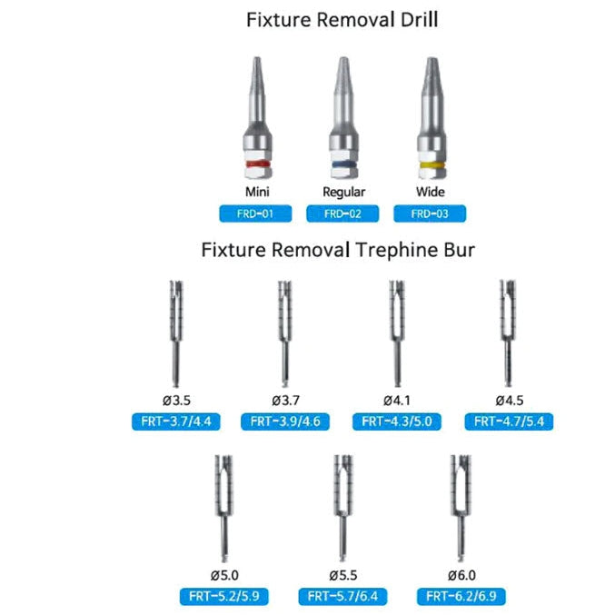 - An excellent combination of Fixture Removers and Trephine Burs for all eventualities.