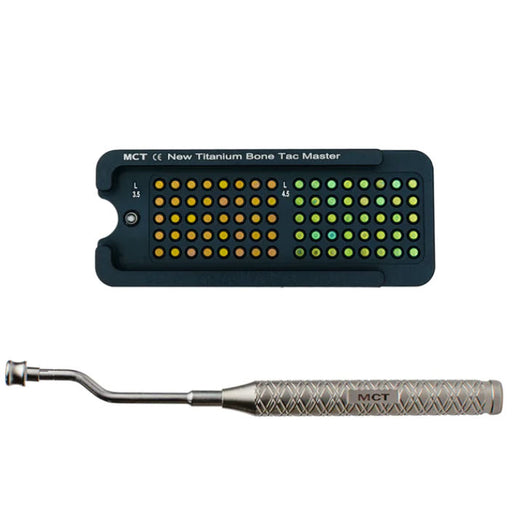MCT BioKit includes: Automatic Tac Gun (TBM-05) Bone Tac Remover (BT-RM) 21 Titanium Tacs, Choice of Long (4.5mm) or Short (3.5mm) Tacs (BT)