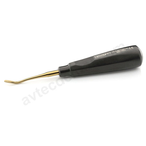 77R Root Elevator, Thin, Wide, Gold Titanium, Serrated, Octoblack Handle® - Nexxgen Biomedical®
