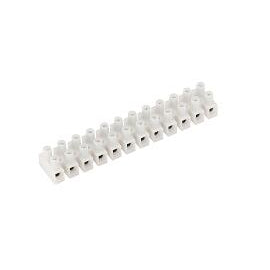 Electrical Terminal Strip, 12 Pole, White Barrier Type, 30 Amp