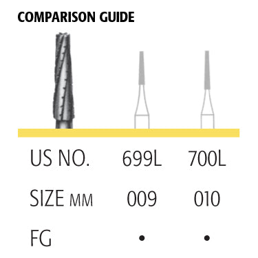Flat-End Tapered Cross-Cut Long one-piece operative carbides are machined from a singular, monolithic piece of tungsten carbide. This optimal manufacturing process eliminates breakage consistently experienced with traditional two-piece burs. Without weld and solder points, weak links are removed. Additionally, with more robust construction and optimal tooth geometry, vibration and chatter are reduced and cutting efficiency is optimized.