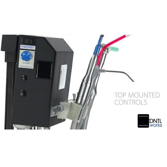 The ProQuest is also equipped with built-in wheels and a retractable handle for easier transportation. Handpiece fiber optics, piezo-electric scalers, and light-curing wands are available as options.