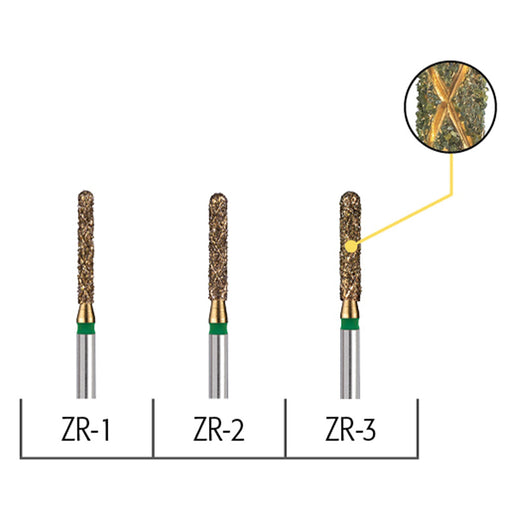 Maverick high-speed Zirminator diamonds for zirconia removal are created with diamond particles that are manufactured in a laboratory using HPHT technology (High Pressure, High Temperature). This renders each particle an identically shaped octahedron. Due to the uniform shape and acute angles of each diamond particle, cutting tools coated with HPHT diamond aggregate are able to cut super-hard materials (like zirconia & lithium discilicate) more efficiently than diamonds coated with natural diamond particles.