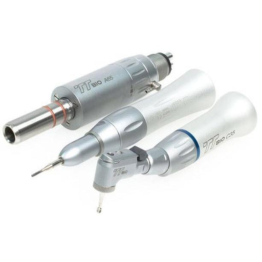 TTBioTTBIO A65 Lowspeed 3-Piece Set with 20,000 RPM Motor Set includes:- 1:1 Contra-angle sheath with latch-type head- 1:1 Straight attachment- 4-hole ...