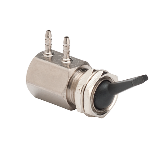 DCIToggle Valve, Side Ported, 2-Way, Gray Panel-mounting 15/32-32 thread w/nut For air or water Port barbs for 1/8" OD Tubing