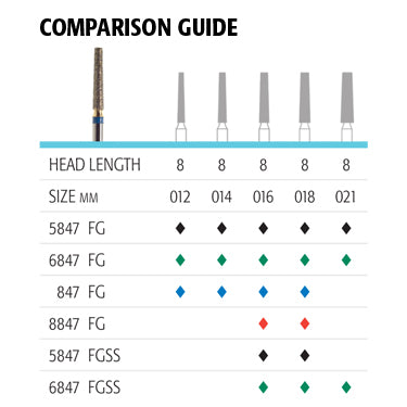 Maverick 847 Flat-End Shoulder Diamonds have consistent grit size which makes for great handling qualities. They are crafted by German technicians who have perfected the art of manufacturing diamond-cutting tools. The enhanced particle coverage at the tip makes for better longevity than the other leading diamonds in the market.