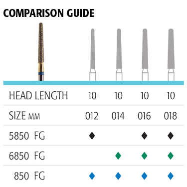 Maverick 850 Round-End Taper Diamonds have consistent grit size which makes for great handling qualities. They are crafted by German technicians who have perfected the art of manufacturing diamond-cutting tools. The enhanced particle coverage at the tip makes for better longevity than the other leading diamonds in the market.