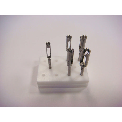 A.TitanImplantation Trephine Kit contains: 3mm, 4mm, 5mm, 6mm, and holder.
