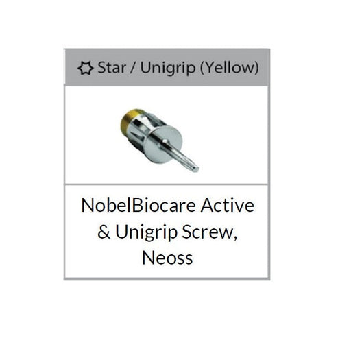 MCT BioReplacement Driver Star / Unigrip (Yellow) for the PDDK-03 Kit Available in 10mm, 15mm, and 25mm (Extra Long) Fits Nobel Biocare Active, Unigrip S...