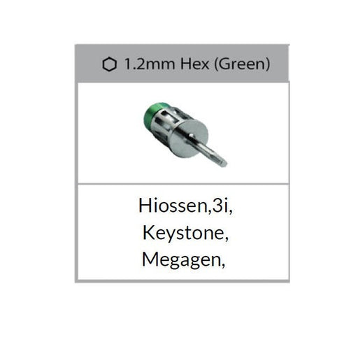 MCT BioReplacement Driver 1.2mm Hex (Green) for the PDDK-03 Kit Available in 10mm, 15mm, and 25mm (Extra Long) Fits Hiossen, 3i, Keystone, and Megagen