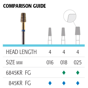 Maverick 845KR Modified Shoulder Diamonds have consistent grit size which makes for great handling qualities. They are crafted by German technicians who have perfected the art of manufacturing diamond-cutting tools. The enhanced particle coverage at the tip makes for better longevity than the other leading diamonds in the market.