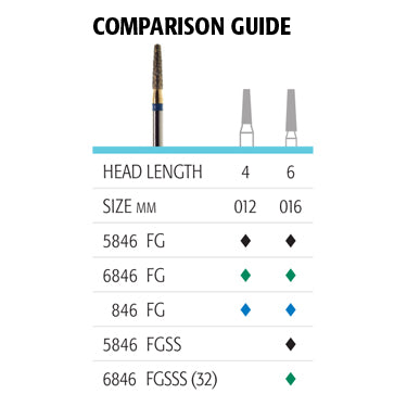 Maverick 846 Flat-End Shoulder Diamonds have consistent grit size which makes for great handling qualities. They are crafted by German technicians who have perfected the art of manufacturing diamond-cutting tools. The enhanced particle coverage at the tip makes for better longevity than the other leading diamonds in the market.