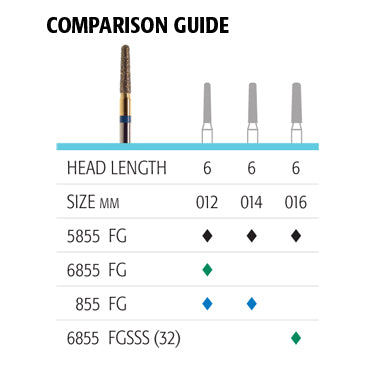 Maverick 855 Round-End Taper Diamonds have consistent grit size which makes for great handling qualities. They are crafted by German technicians who have perfected the art of manufacturing diamond-cutting tools. The enhanced particle coverage at the tip makes for better longevity than the other leading diamonds in the market.