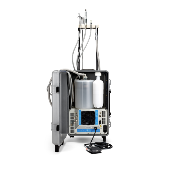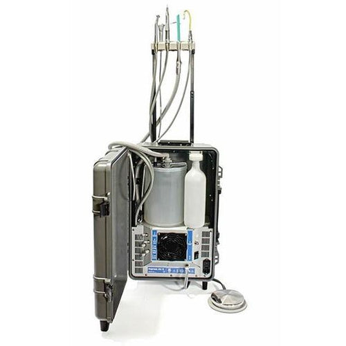 The most popular self-contained mobile dental unit in the world, the Express Portable Dental Unit is the best solution for providing restorative or preventative dentistry in the field. The Express includes a compressor that runs standard air handpieces (highspeed and/or slowspeed), high and low volume suction, an air/water syringe, and a one gallon waste container that lasts all day. The unit is dual-voltage–just plug it in anywhere in the world!