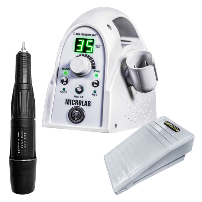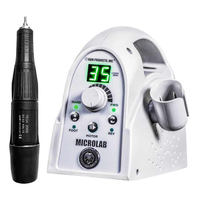 Microlab now features upgraded electronics with precise digital speed control, soft start and stop technology. audible sounds and convenient standby mode. It is full of features unique to Ram at a fraction of the price of its competitors. Superior safety overload and protection along with a convenient right-side handpiece holder and built-in handle to carry.