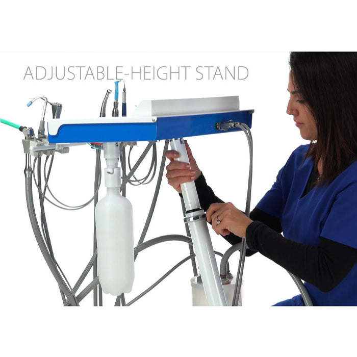This portable dental system is ideal for school-based sealant programs, hospitals, humanitarian or missionary work, remote dentistry, assisted-living facilities, or military applications. The lightweight ProCart I sets up and disassembles quickly and easily. An optional carrying case set facilitates transportation between work sites and provides protection when stored.